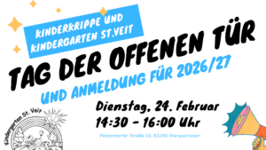 Anmeldung für 2026/27 Kindergrippe und Kindergarten St. Veit. Von 14:30…