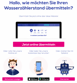 • digital über ein Webformular, eine App (neu: Zähler Plus App) oder einen Chatbot,