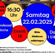 Verkauf von Snacks und Getränken, Eintritt 1 €. Anmeldung erforderlich bis 12 Uhr am Veranstaltungstag bei Diana David, Diana Schlaffer oder unter stoamandl83250@gmx.de. Wir freuen uns auf euch!