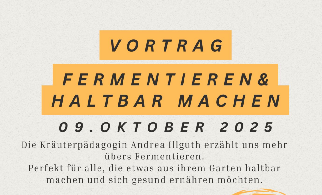 Der Gartenbauverein Marquartstein hat die Kräuterpädagogin Andrea Illguth eingeladen, einen Vortrag für uns zu halten zum Thema „Fermentieren – die älteste Form des Haltbarmachens“. Wir wissen, dass sich schon viele in Marquartstein auf den Vortrag freuen, deswegen: Seid auch mit dabei!